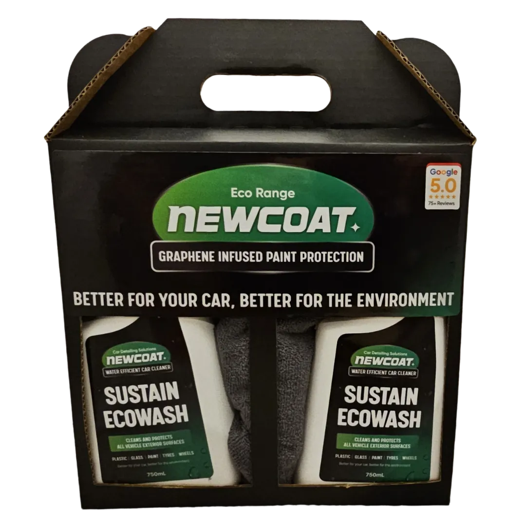 Newcoat Eco is a graphene-infused paint and glass protection specifically designed to keep your car cleaner for longer and make it easier to clean when it gets dirty. Ultra hard protective coating increase gloss, protects against contaminants such as bird poop, pollen, dust, and dirt. Allows waterless cleaning with Newcoat Sustain Ecowash.